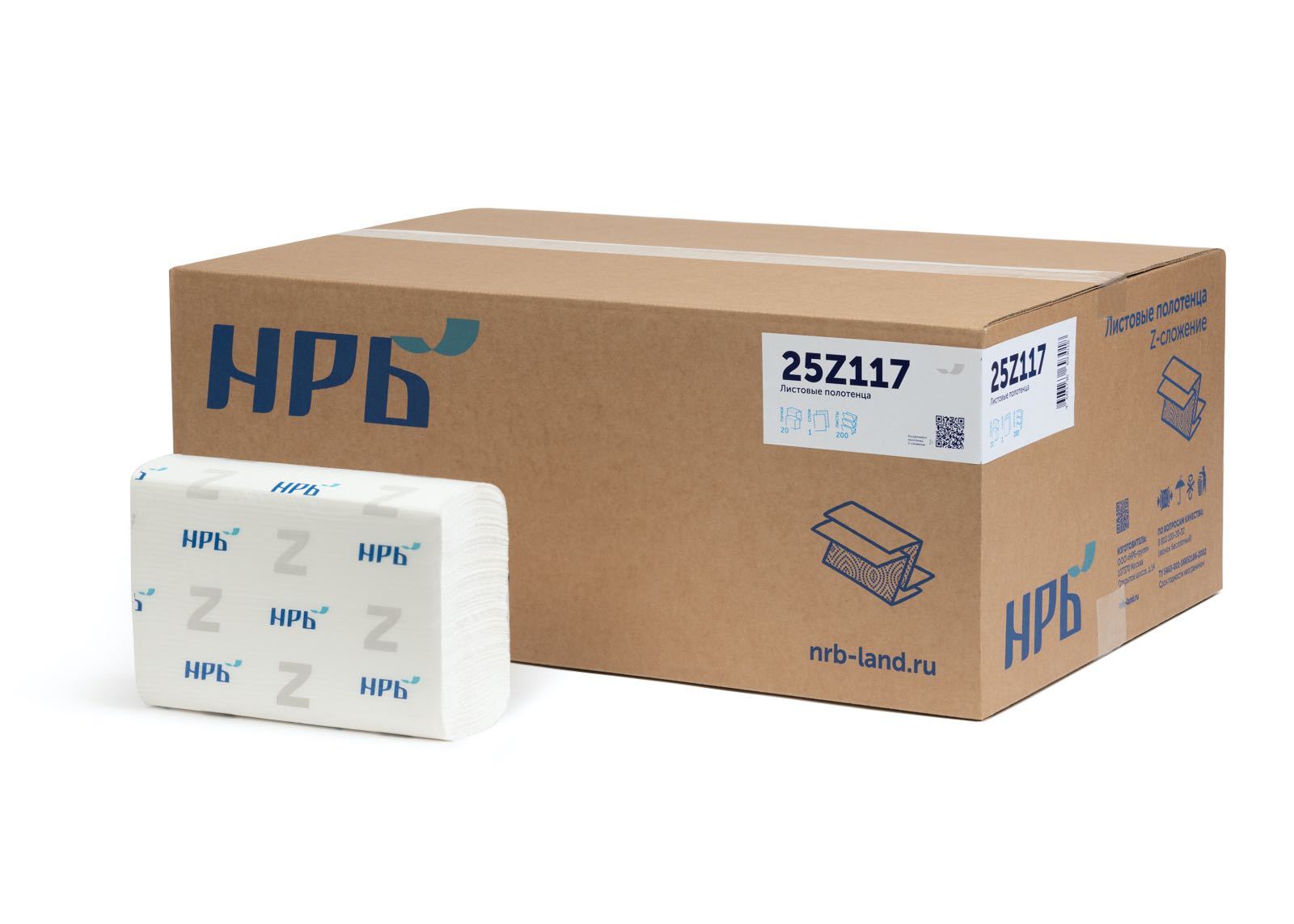Упаковка полотенец Z-сложения. В одной коробке 25 пачек